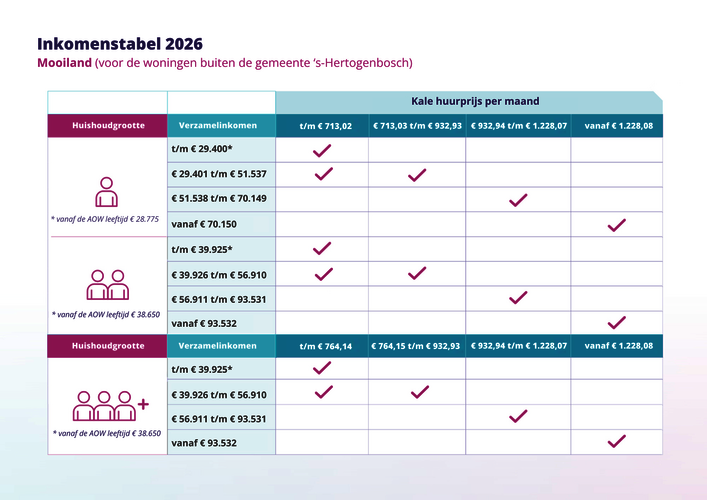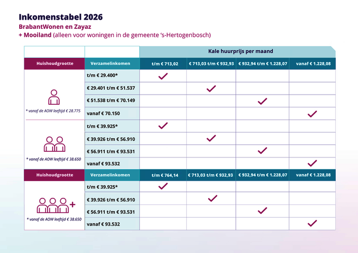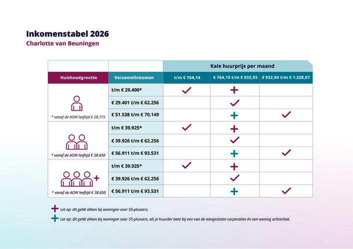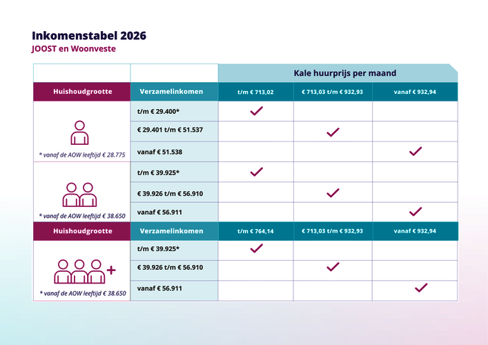 Soms kiest een corporatie voor andere inkomensvoorwaarden in de advertentie. Daarom kan je aan de afbeeldingen van de inkomenstabellen geen rechten ontlenen.